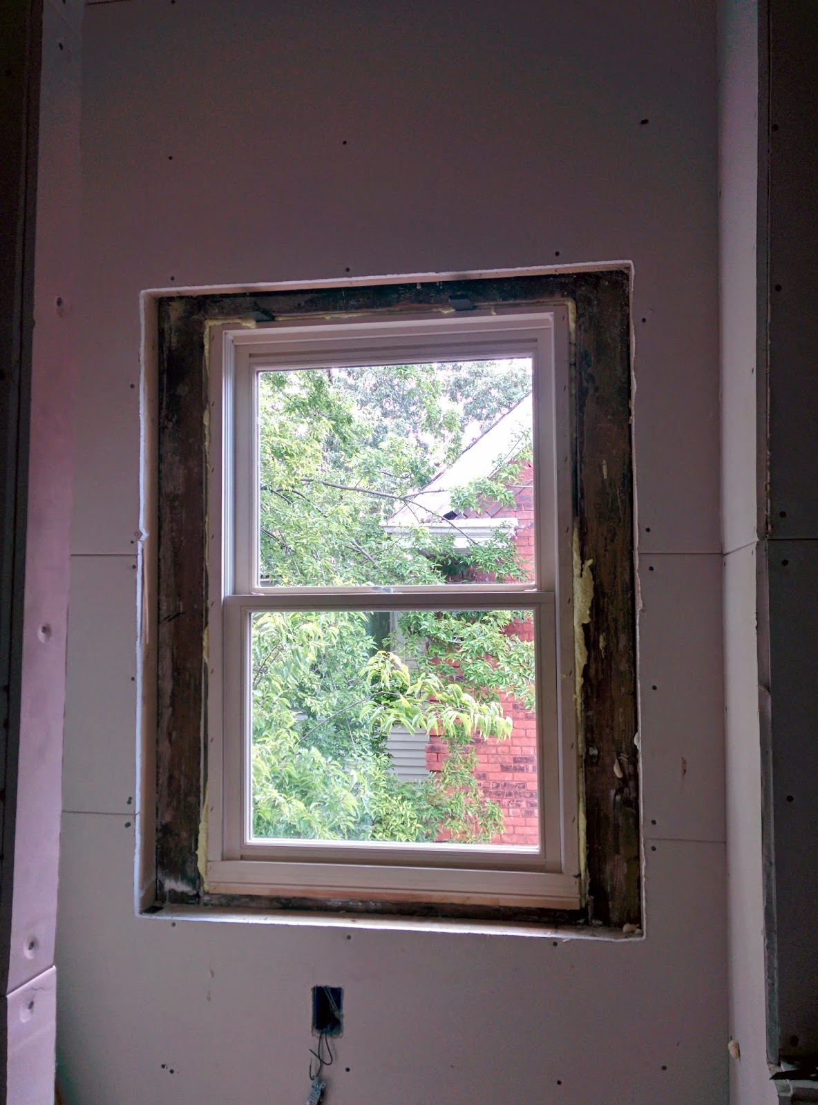 | That upper window is the only new one we had to buy. Someone had put a shower insert over it from the inside and just tore out the old one and put wood over it. You know, because bathrooms are so much nicer with no natural light, amiright? |